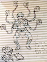 That is, if "traditional art" can include things like "a supporting character from Tron (1982) drawn with six tentacles that he's using to wield a whole season of Babylon 5 DVDs as disc-battle weapons."